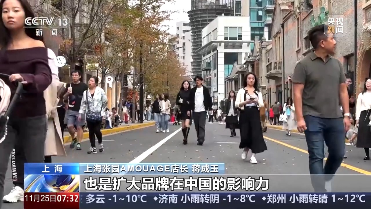 上海張園AMOUAGE店長 蔣成玉:因?yàn)檫@邊的建筑是地標(biāo)性的建筑,客流比較大,也是擴(kuò)大品牌在中國的影響力。