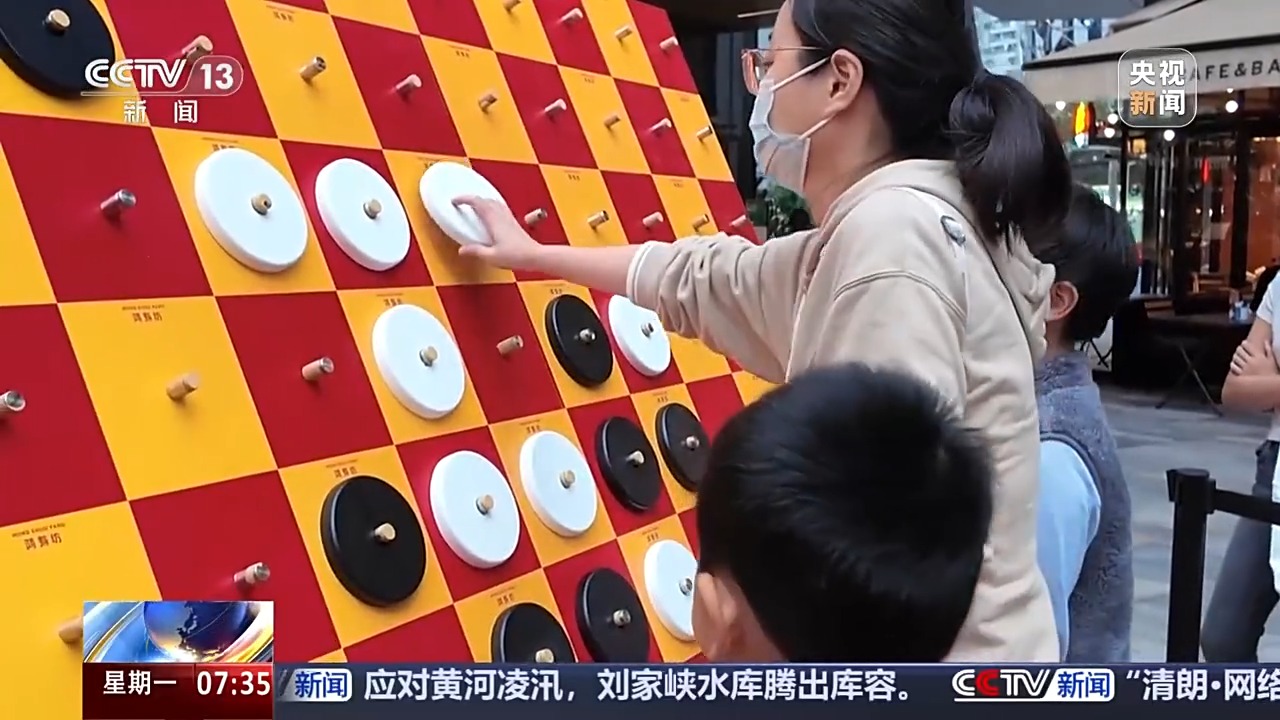 而上海的另一處熱門打卡地——“鴻壽坊”,則用煙火氣吸引著市民。在中心廣場上,一場“街坊擂臺”正在舉行。飛行棋、呼啦圈,簡單有趣的運(yùn)動吸引了許多參與者。