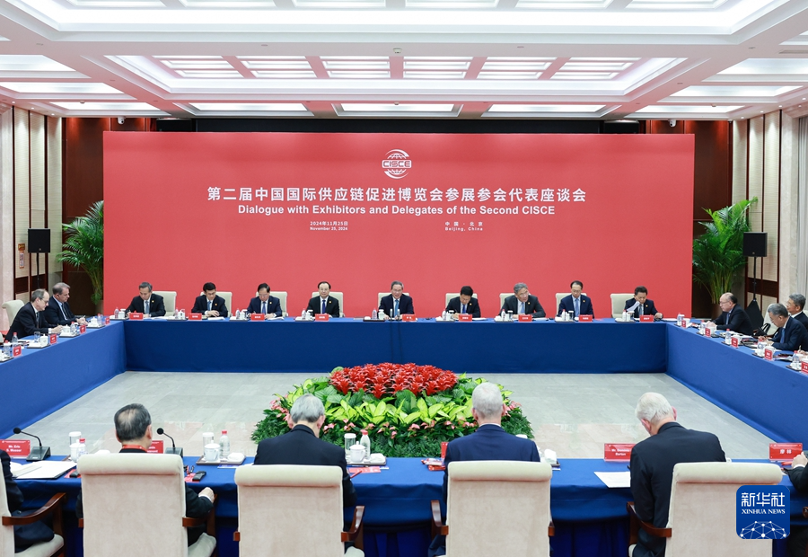 11月25日,國務(wù)院總理李強在北京同第二屆中國國際供應(yīng)鏈促進博覽會參展參會企業(yè)代表座談。新華社記者 王曄 攝