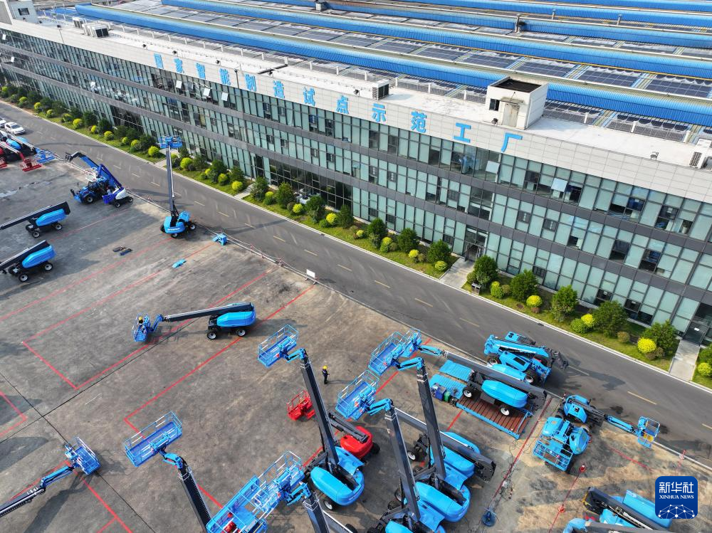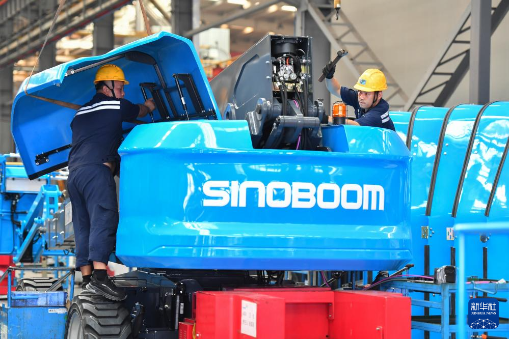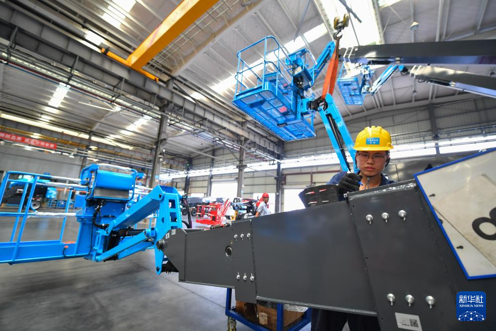 工作人員在位于寧鄉(xiāng)市的湖南星邦智能裝備股份有限公司高空作業(yè)產(chǎn)品裝備車間作業(yè)(9月27日攝)。新華社記者 陳澤國 攝