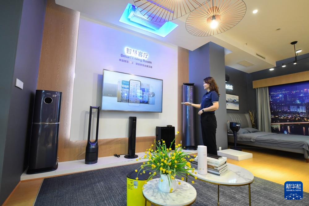 9月27日,工作人員在位于寧鄉(xiāng)市金洲新城的格力暖通制冷設(shè)備有限公司展示智能家電使用場景。新華社記者 陳澤國 攝
