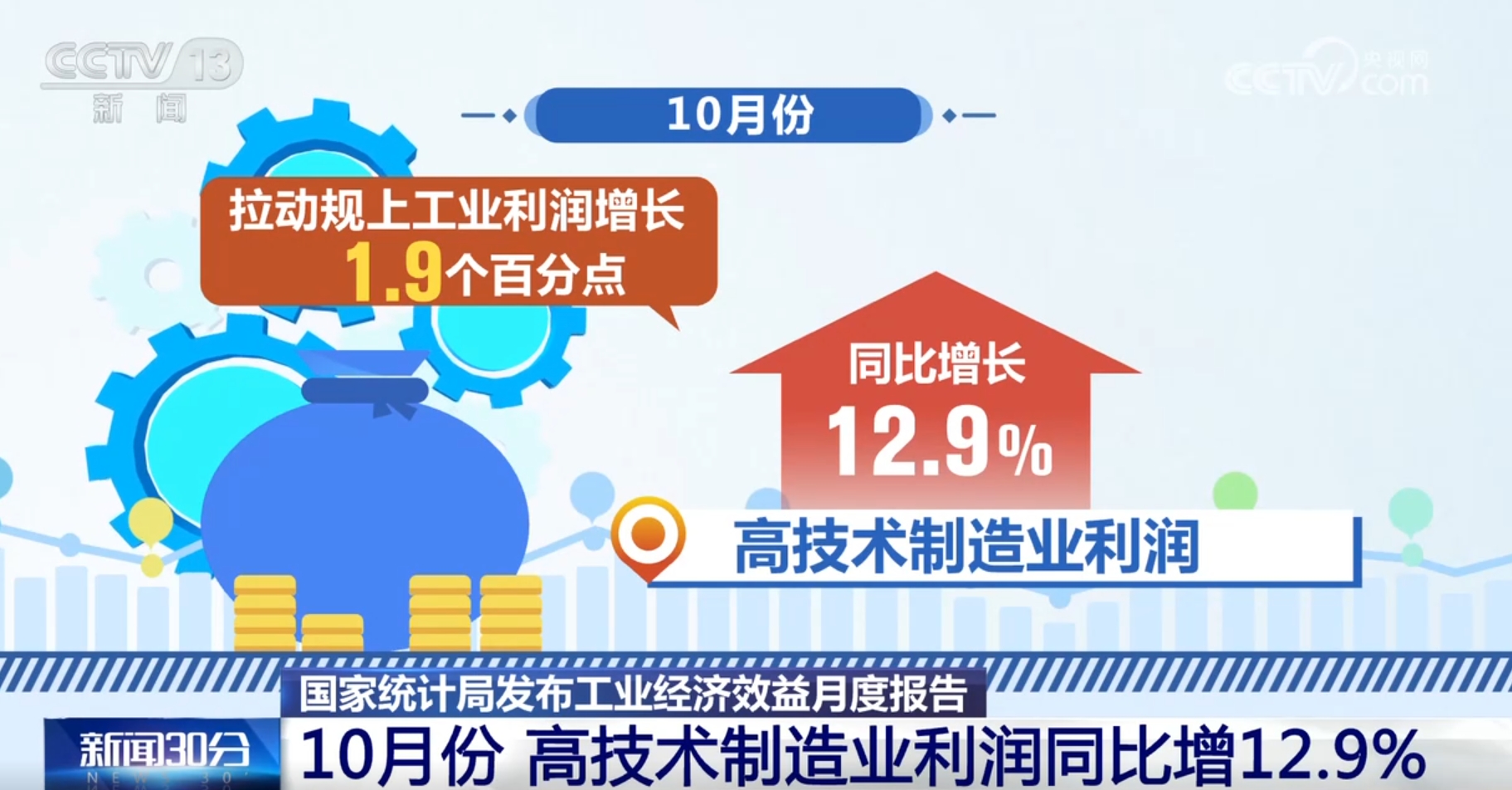 高技術制造業(yè)支撐和帶動作用顯現(xiàn),10月份,高技術制造業(yè)利潤同比增長12.9%,拉動規(guī)上工業(yè)利潤增長1.9個百分點。其中,可穿戴智能設備制造、敏感元件及傳感器制造等行業(yè)利潤同比分別增長73.3%、48.8%。