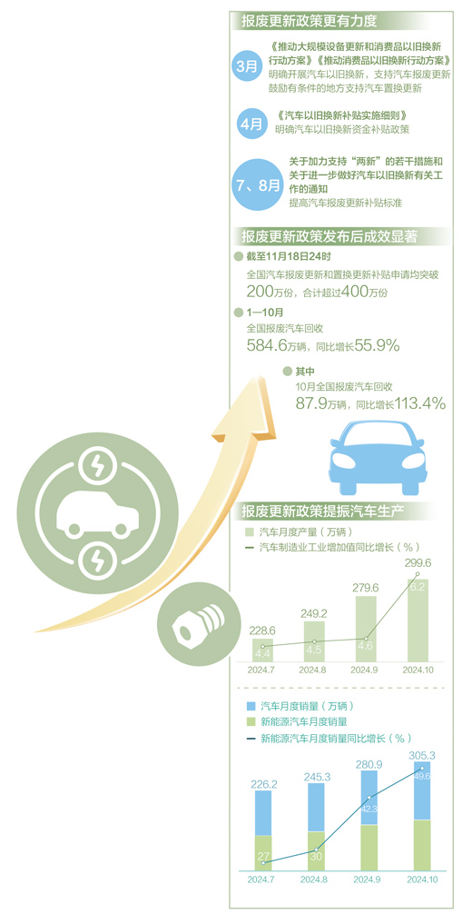 政策激發(fā)了消費者以舊換新熱情,也讓中再生這樣的報廢汽車回收拆解企業(yè)生產線更加忙碌。中再生報廢汽車事業(yè)部副經理王功獻介紹,截至11月上旬,中再生共收購報廢機動車1萬余輛,與去年同期相比增長近七成。