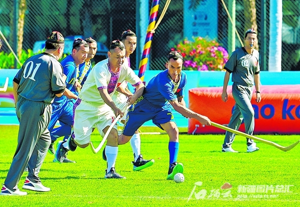 11月24日上午,男子珍珠球第二輪小組賽中山東隊與新疆隊比拼。比賽結(jié)束后,兩隊在場外同喊口號、互贈紀念品;26日,民族大聯(lián)歡文化活動上,全國各地代表團相聚“天涯海角”景區(qū),各族運動員在海邊延展出一條綿長的“民族風景線”;27日,新疆代表團在駐地酒店精心籌備了聯(lián)歡會,新疆、湖南、云南、黑龍江等地代表團歡聚一堂,共敘友情。