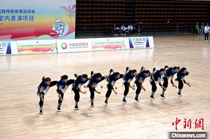 11月23日,海南三亞,《羌鈴賽》亮相第十二屆全國少數(shù)民族傳統(tǒng)體育運動會。王利文 攝