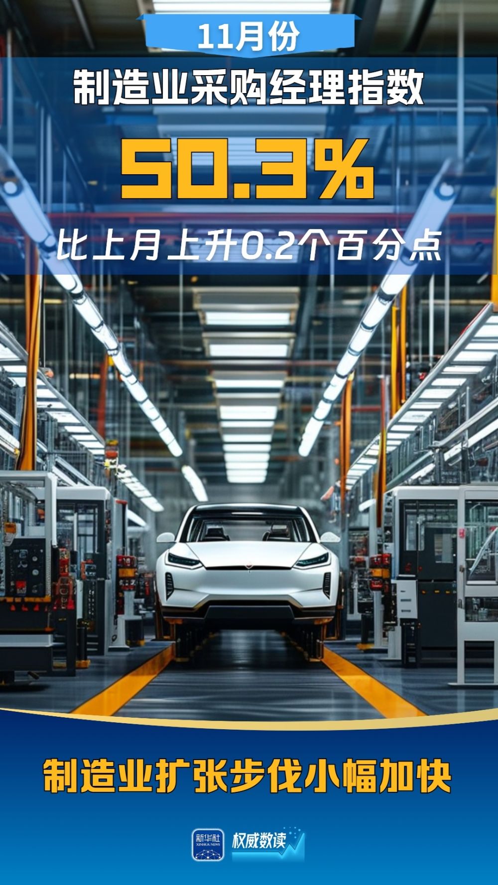 國家統(tǒng)計(jì)局30日發(fā)布中國采購經(jīng)理指數(shù)。11月份,隨著一系列存量政策和增量政策持續(xù)協(xié)同發(fā)力,制造業(yè)PMI在景氣區(qū)間上行,升至50.3%,擴(kuò)張步伐有所加快;非制造業(yè)商務(wù)活動指數(shù)為50.0%,比上月下降0.2個(gè)百分點(diǎn),位于臨界點(diǎn);綜合PMI產(chǎn)出指數(shù)為50.8%,與上月持平,表明我國企業(yè)生產(chǎn)經(jīng)營活動總體繼續(xù)擴(kuò)張。