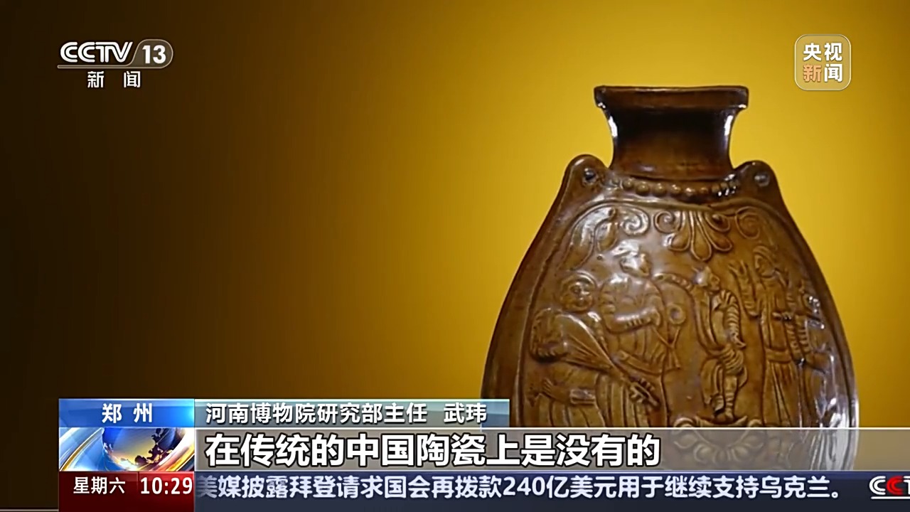 河南博物院研究部主任 武瑋:這種題材實(shí)際上在傳統(tǒng)的中國陶瓷上是沒有的。北朝的時(shí)期整個(gè)社會對它的一種崇尚或者一種喜好,才會出現(xiàn)這樣一個(gè)題材,整個(gè)中西方的交流在深入發(fā)展。