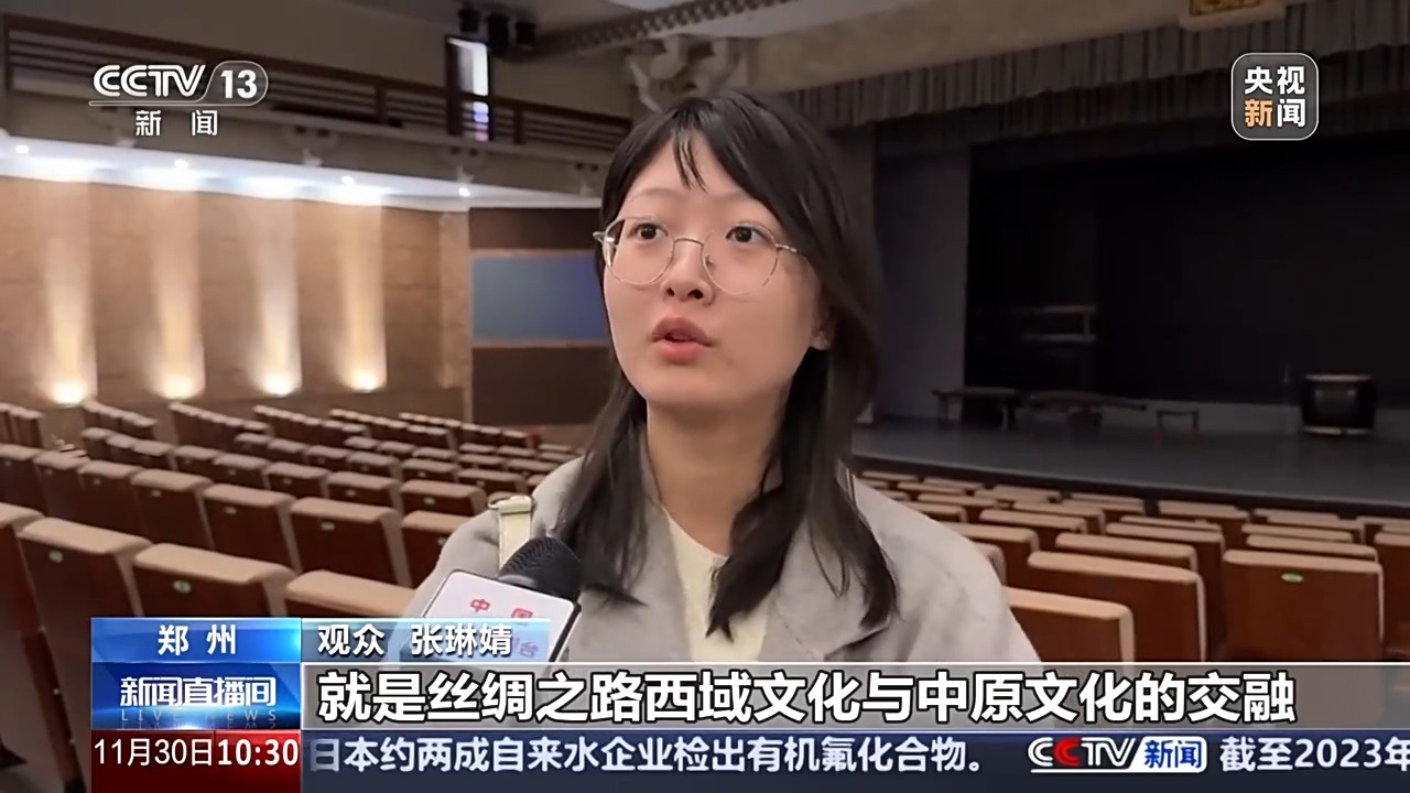 觀眾 張琳婧:就是絲綢之路西域文化與中原文化的交融,他的舞蹈非常生動形象地展示了這一特點(diǎn),讓我們也感受出了古代文化交融的這樣一個(gè)現(xiàn)象。
