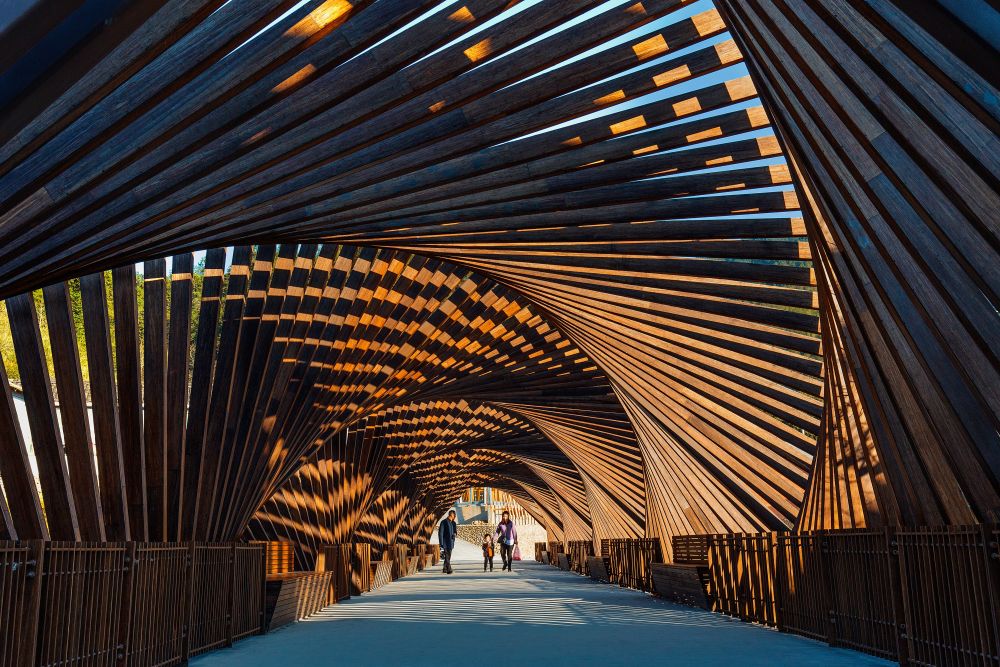 圖為溪頭村國際竹建筑村落16個(gè)建筑單體之一“時(shí)光隧道橋”。新華社發(fā)