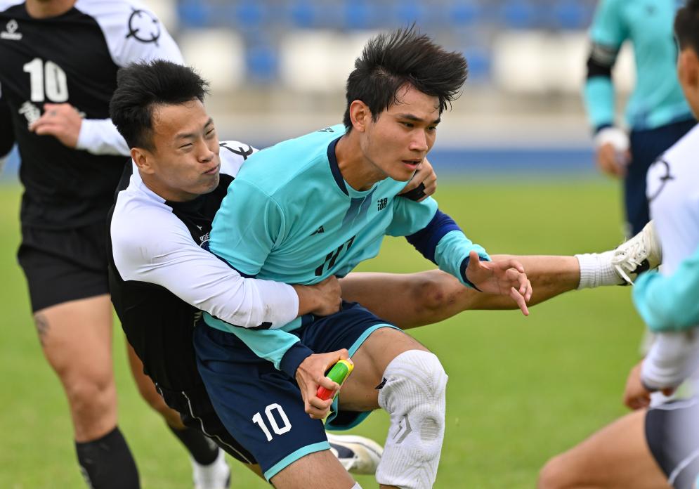 11月27日,湖南隊選手鄒高丞(中)在比賽中突破。當日,在第十二屆全國少數(shù)民族傳統(tǒng)體育運動會花炮比賽淘汰賽中,重慶隊7比6戰(zhàn)勝湖南隊,晉級半決賽。新華社記者 郭程 攝