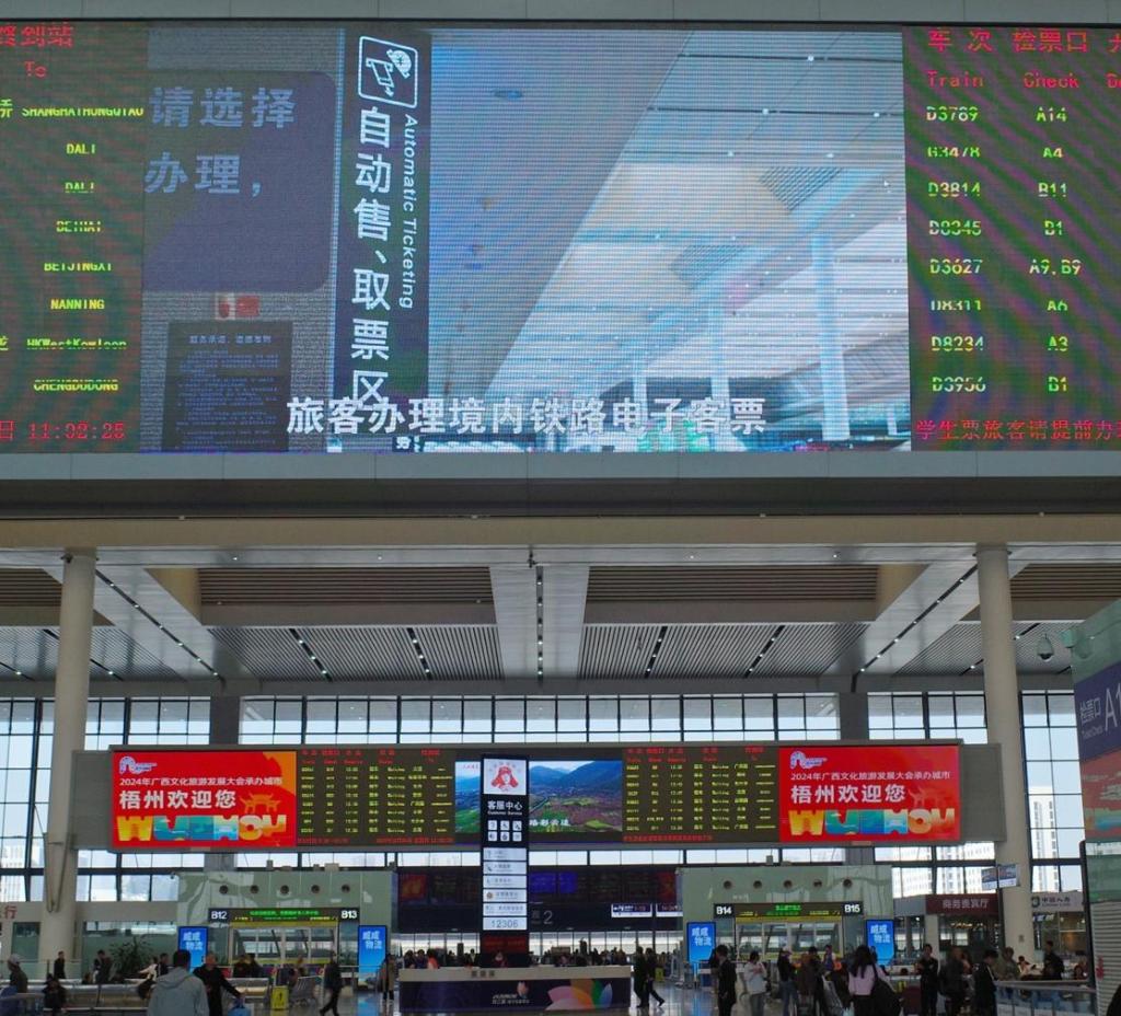 12月1日,在廣西南寧市南寧東站,車站大屏正播放鐵路電子客票服務宣傳片。 新華社記者李歡 攝