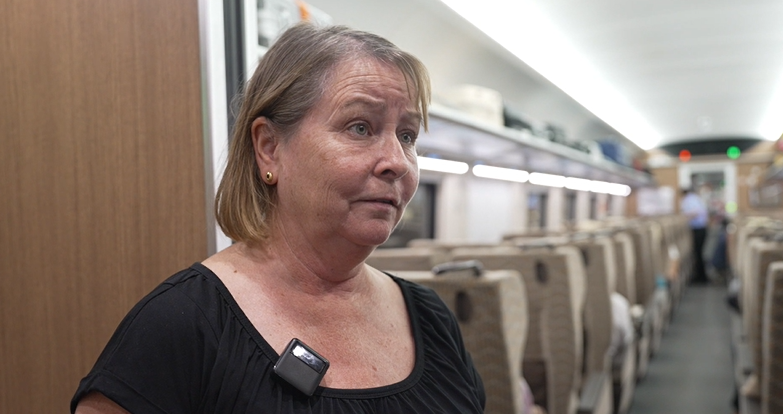 黃復(fù)勝:“我感覺坐了這個火車,覺得很舒服,然后很快就可以進火車,check in(進站)和 check out(出站)都是很方便的?!?/p>