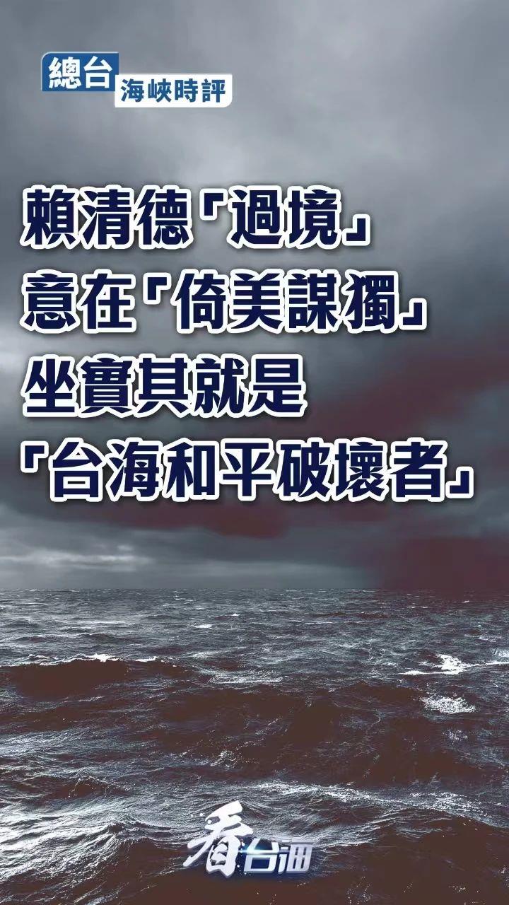 賴清德深知“過境”美國必然遭到大陸方面堅決反對、有力反制,只會加劇臺海緊張局勢。因此,在其行前賴當局就勾連外部勢力在國際上造勢,妄圖以所謂“慣例說”將此行正當化,掩蓋其挑釁在先、破壞和平的惡劣本質(zhì)。臺灣是中國的臺灣,臺灣地區(qū)領(lǐng)導(dǎo)人以任何名義任何理由“過境”美國,都是對一個中國原則的嚴重挑戰(zhàn)。錯誤的所謂“慣例”不僅不是正當化的理由,還是錯上加錯、惡上加惡,一步步把臺灣推向更加危險的境地。