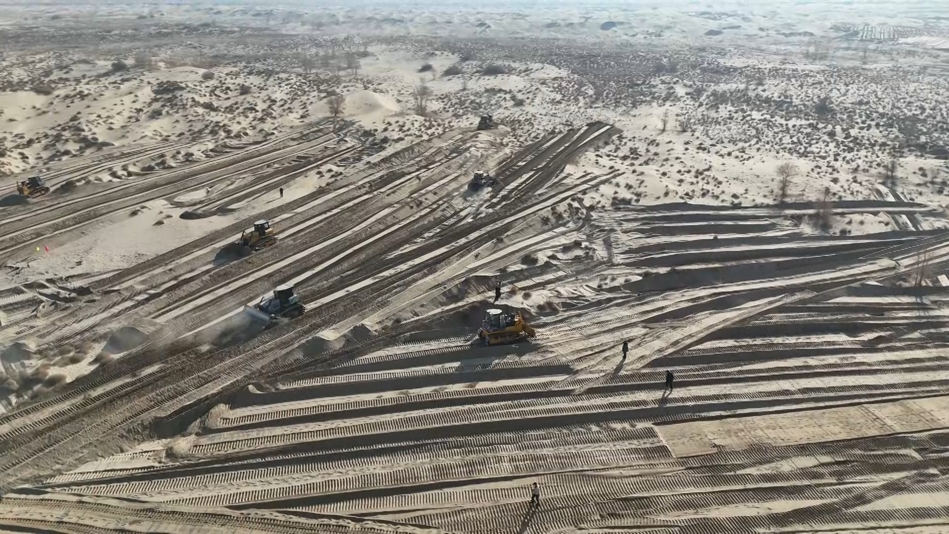沙地平整,通過生物治沙改變當?shù)厣鷳B(tài)環(huán)境 (墨玉縣融媒體中心供圖)