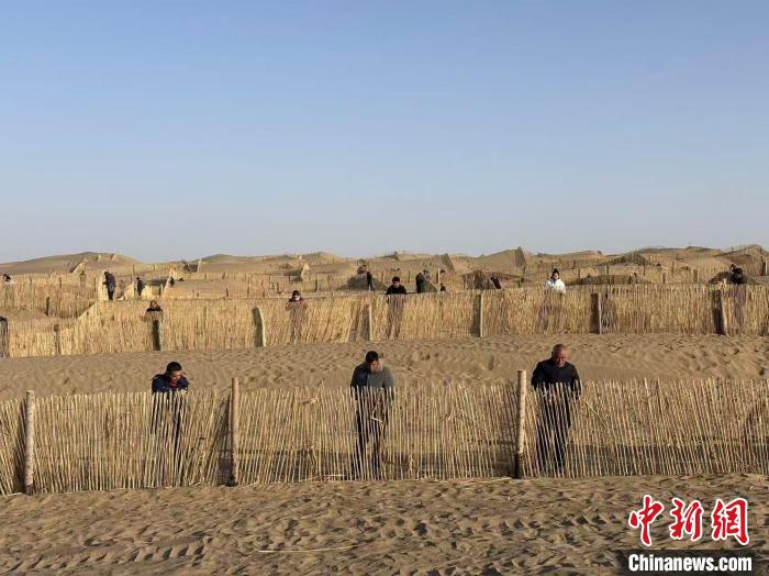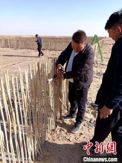 為此,一旦發(fā)現(xiàn)沙障出現(xiàn)破損,伊卜拉伊木和工友們就要及時維修。