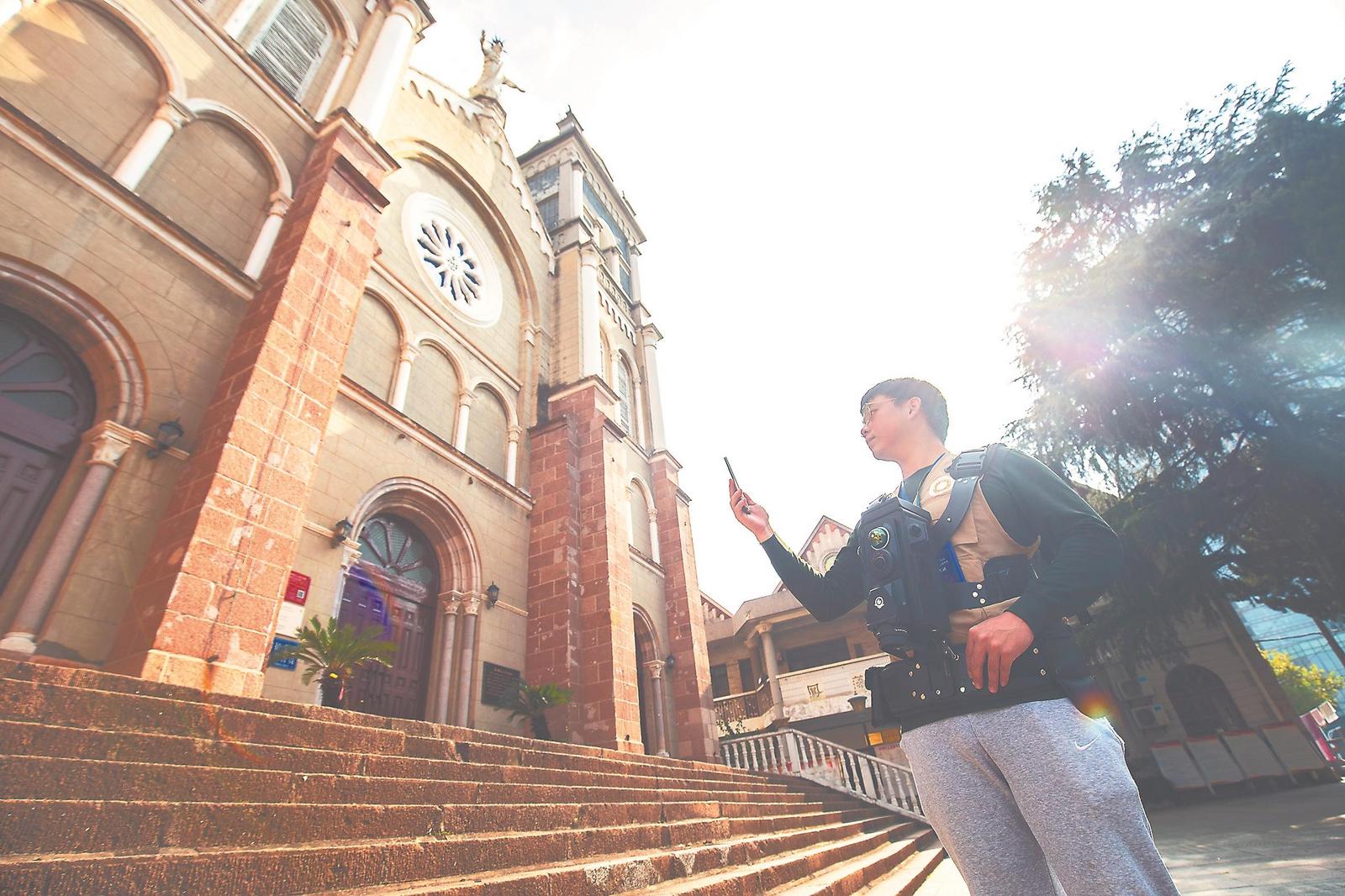 普查隊員在實地調(diào)查歷史建筑。(武文葆 攝)