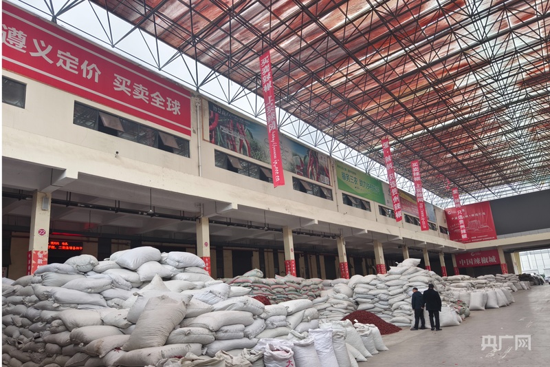 仲冬時節(jié),走進(jìn)位于貴州北部的遵義市蝦子鎮(zhèn)的中國辣椒城,火紅的干辣椒堆成一座座小山,分外惹眼,LED大屏不斷刷新著數(shù)據(jù),上面滾動顯示的是“全國干辣椒價格指數(shù)”,這些價格成為全國各大辣椒交易市場的定價“風(fēng)向標(biāo)”,展示著當(dāng)?shù)亍爸袊苯贰⒆窳x定價、買賣全球”的目標(biāo)。