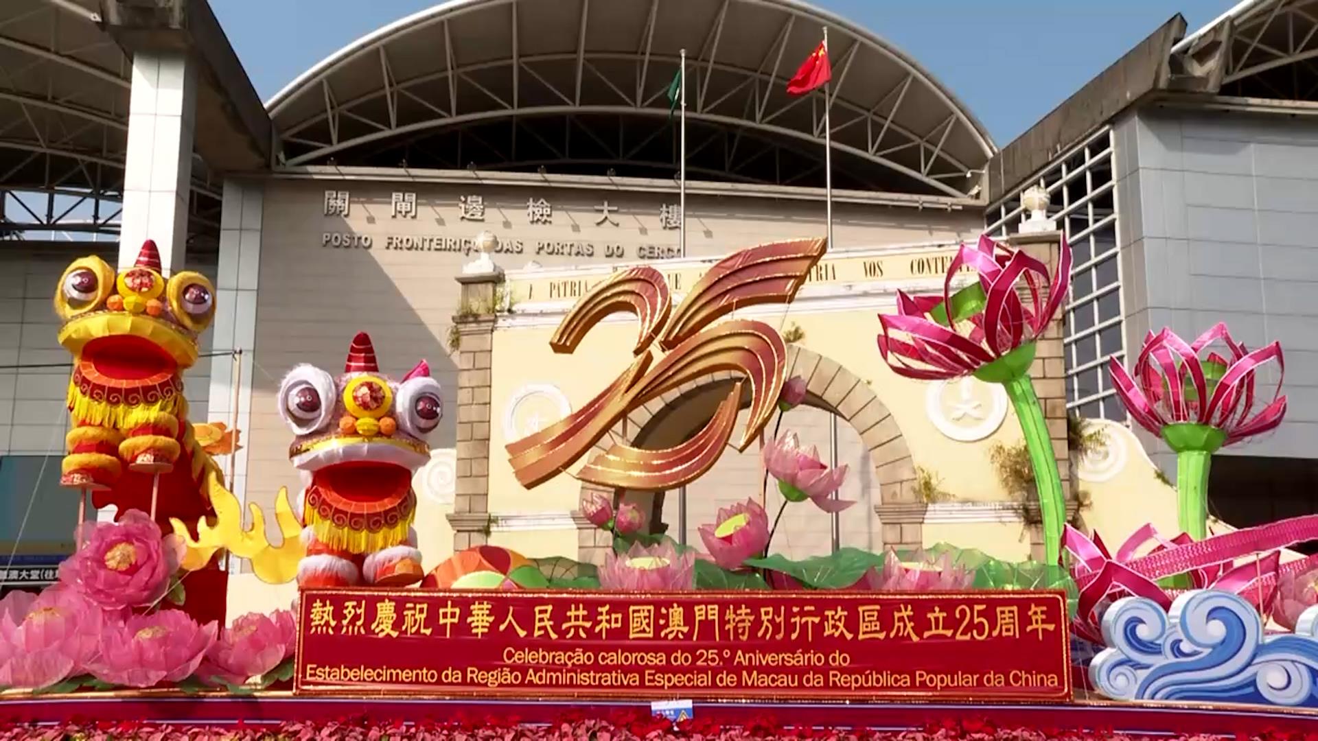 鮮艷的五星紅旗和澳門特區(qū)區(qū)旗迎風飄揚