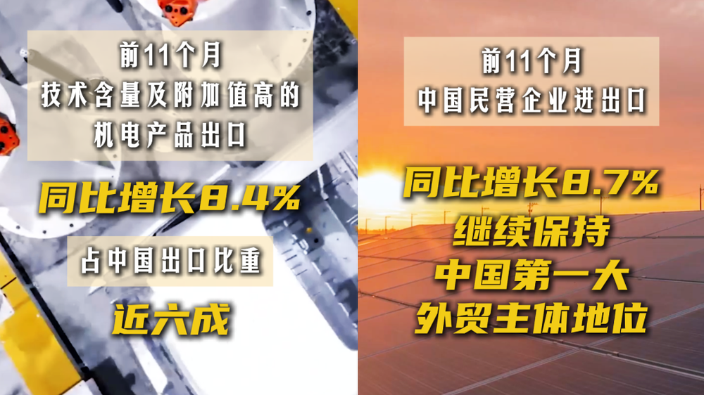 今年以來,中國外貿(mào)運(yùn)行總體平穩(wěn)。海關(guān)總署12月10日數(shù)據(jù)顯示,今年前11個月,我國貨物貿(mào)易進(jìn)出口總值39.79萬億元,同比增長4.9%。全年外貿(mào)可望平穩(wěn)收官,實現(xiàn)質(zhì)升量穩(wěn)目標(biāo)。