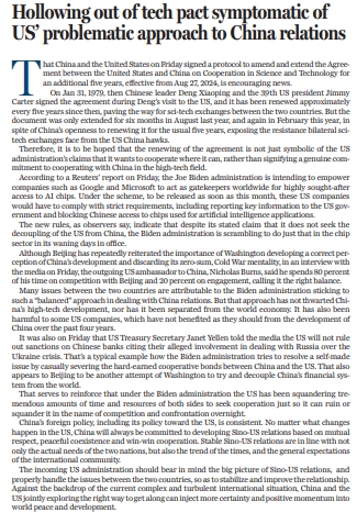 原標(biāo)題:Hollowing out of tech pact symptomatic of US' problematic approach to China relations