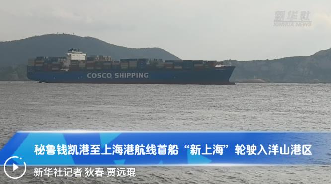 新華社上海12月18日電(記者賈遠琨、狄春)12月18日,中遠海運旗下“新上?!陛喗?jīng)過23天的航行,從秘魯錢凱港抵達上海洋山港,這是自秘魯錢凱港開港后首個“錢凱—上?!闭胶酱危瑯?biāo)志著從錢凱港到上海港的海運航次首次雙向貫通。