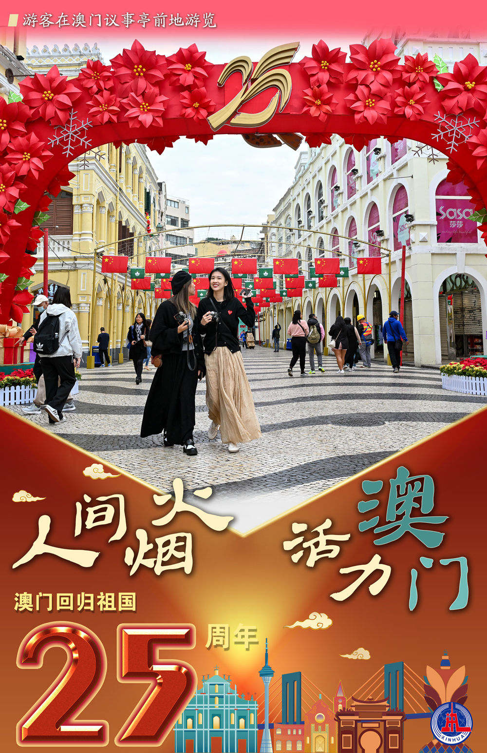 25年來,澳門經濟快速增長、民生持續(xù)改善、社會和諧穩(wěn)定、國際影響力顯著提升。如今的澳門精彩紛呈,傳統(tǒng)融入現(xiàn)代,澳門的街道“充滿了活力與生機”。作為獨特的旅游目的地,澳門大型盛事、表演以及大大小小的節(jié)慶活動貫穿整年,活潑的“人間煙火氣”格外吸引游客,他們在這里品嘗全球美食、欣賞優(yōu)秀藝術,一起體驗“最是動聽凡人歌”的活力澳門。