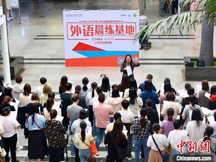 每天早上8:40-9:20,趕在大量顧客到來之前,在義烏國際商貿城的各個區(qū)塊都可以看到上百位集體晨讀、學習英語的人。其中大部分是市場內的老板娘,很多都經(jīng)營著上千萬年外貿訂單的商鋪。