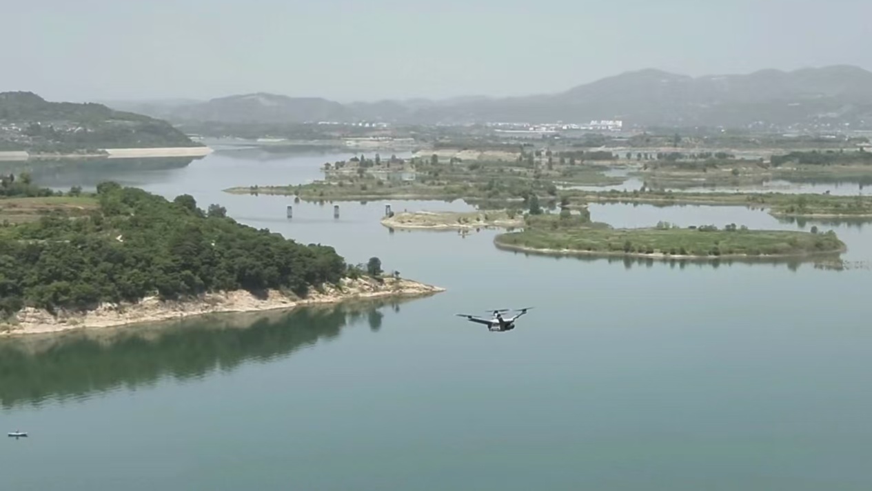 無人機在丹江口庫區(qū)鄖陽段開展巡庫工作(央廣網(wǎng)發(fā) 十堰市鄖陽區(qū)委宣傳部供圖)