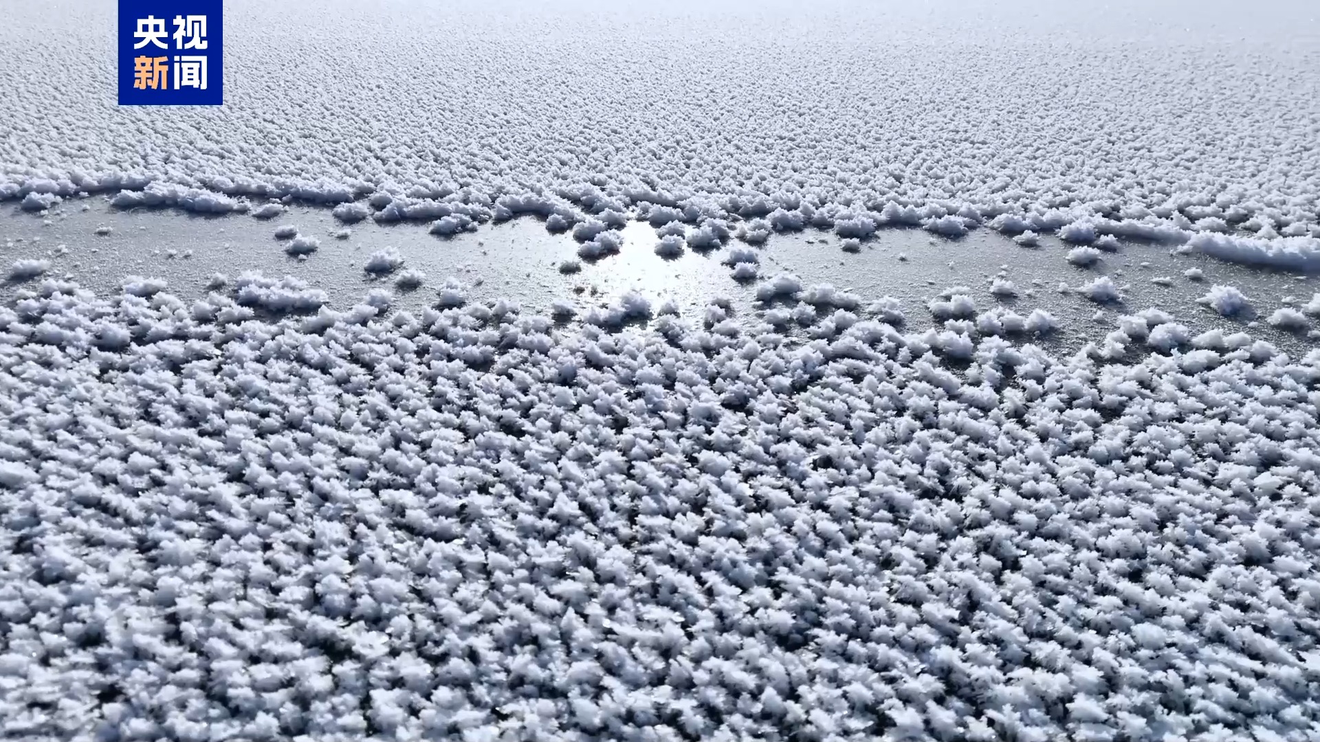 據(jù)了解,博斯騰湖 “冰花”奇觀形成的原因主要是氣溫在短時間內(nèi)驟降,冰面上過冷的飽和水汽碰到干凈光滑的冰面,使得冰面上慢慢長出了“冰花”。
