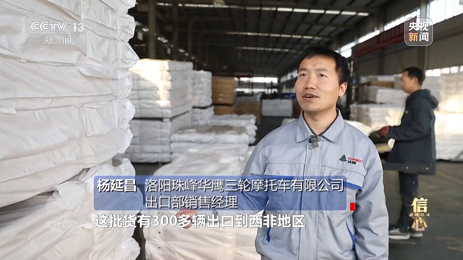 洛陽(yáng)珠峰華鷹三輪摩托車有限公司出口部銷售經(jīng)理 楊延昌:“這批貨有300多輛出口到西非地區(qū),目前訂單量已經(jīng)達(dá)到了3萬(wàn)臺(tái),排到了25年3月份?!?/p>