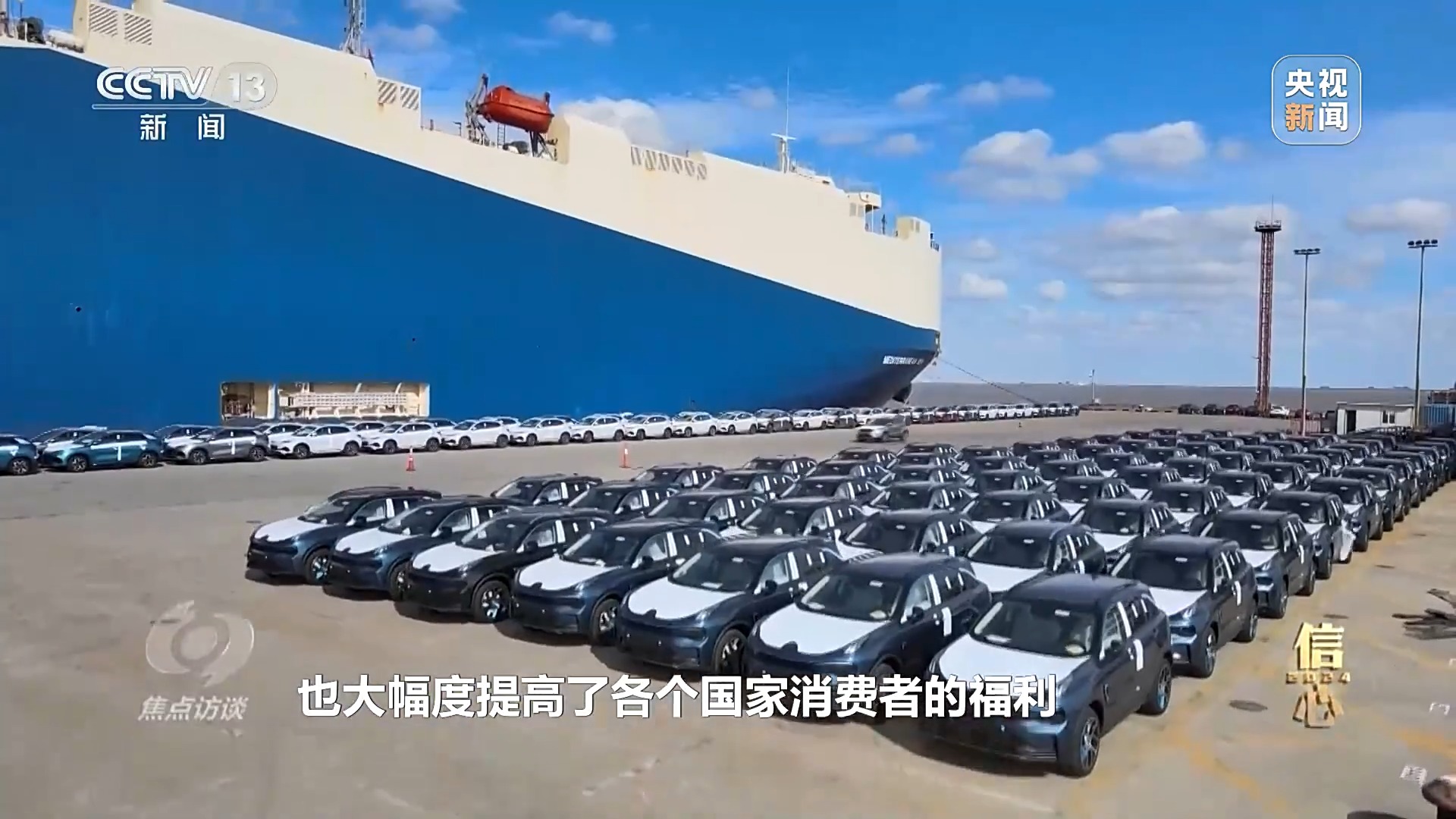 商務(wù)部研究院對(duì)外貿(mào)易研究所所長(zhǎng) 梁明:“今年以來(lái),‘新三樣’類商品,比如說(shuō)汽車,屢創(chuàng)新高。一些傳統(tǒng)商品,像‘老三樣’,紡織服裝、家電之類的,出口份額和規(guī)模也在創(chuàng)新高?!?/p>