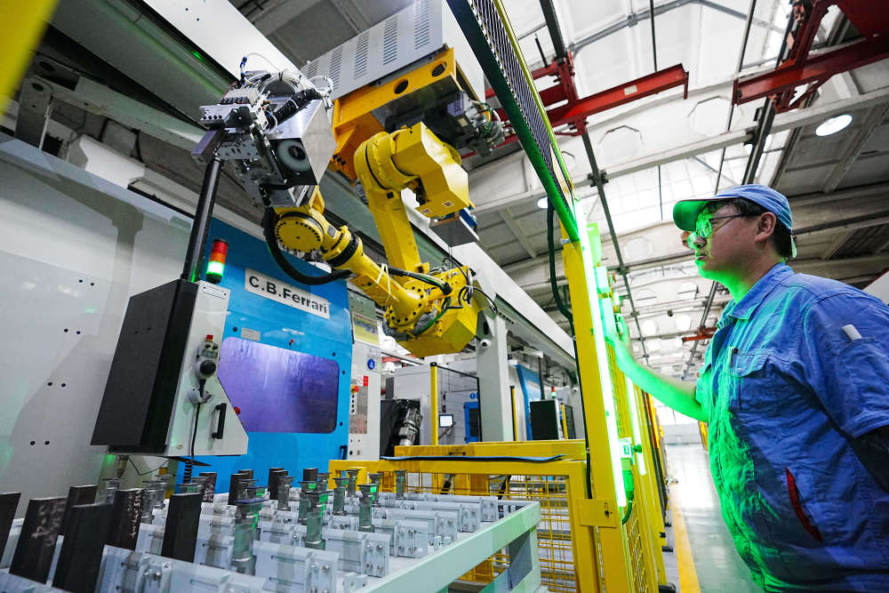 7月23日,在哈電集團(tuán)哈爾濱汽輪機(jī)廠有限責(zé)任公司葉片加工智能化車(chē)間,工作人員在觀察智能機(jī)械臂運(yùn)行情況。近年來(lái),東北三省加大力度推進(jìn)傳統(tǒng)制造業(yè)數(shù)字化改造,依靠科技創(chuàng)新“第一動(dòng)力”,聚焦“卡脖子”領(lǐng)域,讓傳統(tǒng)產(chǎn)業(yè)增“智”提“質(zhì)”。(新華社記者 王建威 攝)