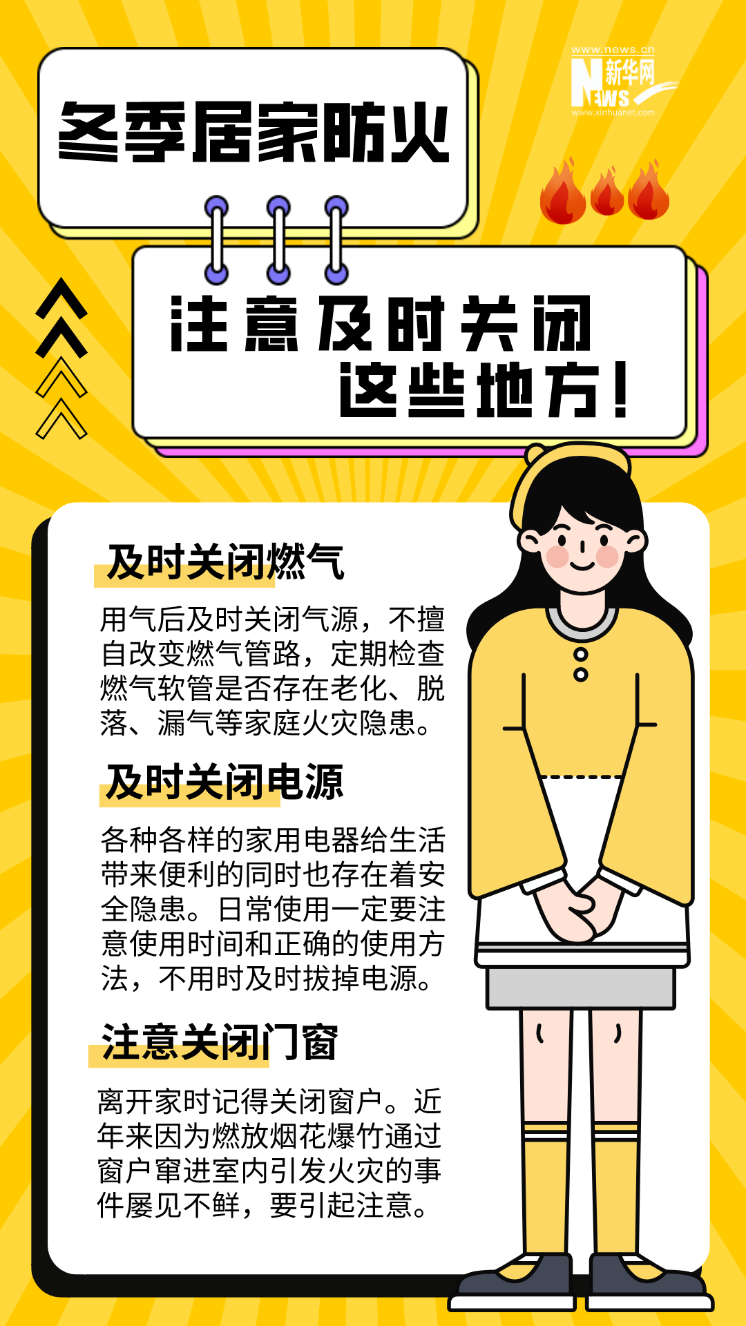 男子在家中用火盆取暖時(shí),不慎引燃身上衣物;女子在電暖器上晾衣服引發(fā)火災(zāi);母子二人因在家中燒煤取暖、通風(fēng)不暢導(dǎo)致一氧化碳中毒......冬季天氣寒冷干燥,晝夜溫差大,生活用火、用氣、用電增加。若疏忽大意,極易引發(fā)火災(zāi)。安全過冬,居家防火這些細(xì)節(jié)要注意。