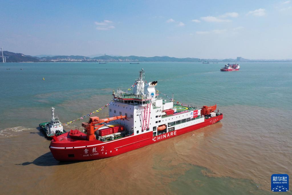 2024年11月1日,執(zhí)行中國第41次南極考察任務(wù)的“雪龍”號(hào)和“雪龍2”號(hào)船從廣州南沙國際郵輪母港碼頭出發(fā)。新華社記者 黃國保 攝