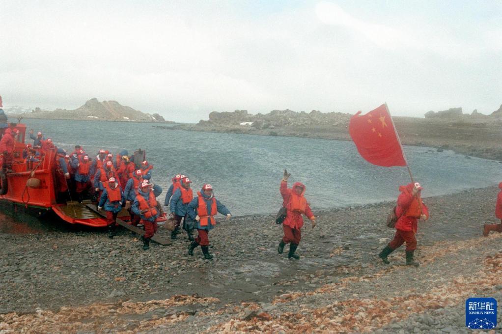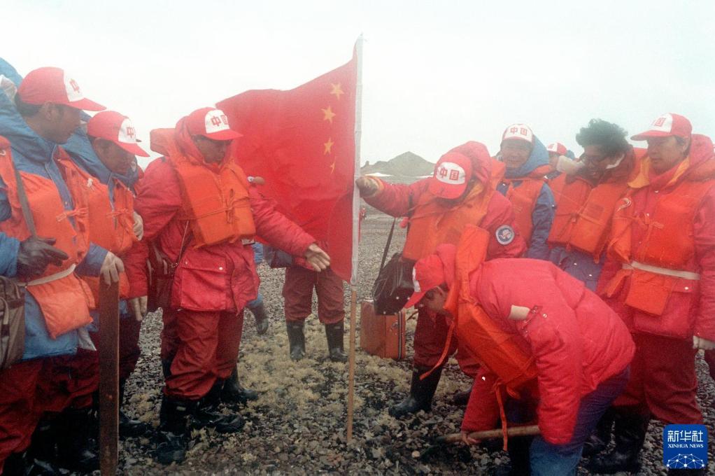 1984年12月30日,中國南極考察隊(duì)登陸成功后,在南極洲插上第一面五星紅旗。新華社記者 朱幼棣 攝