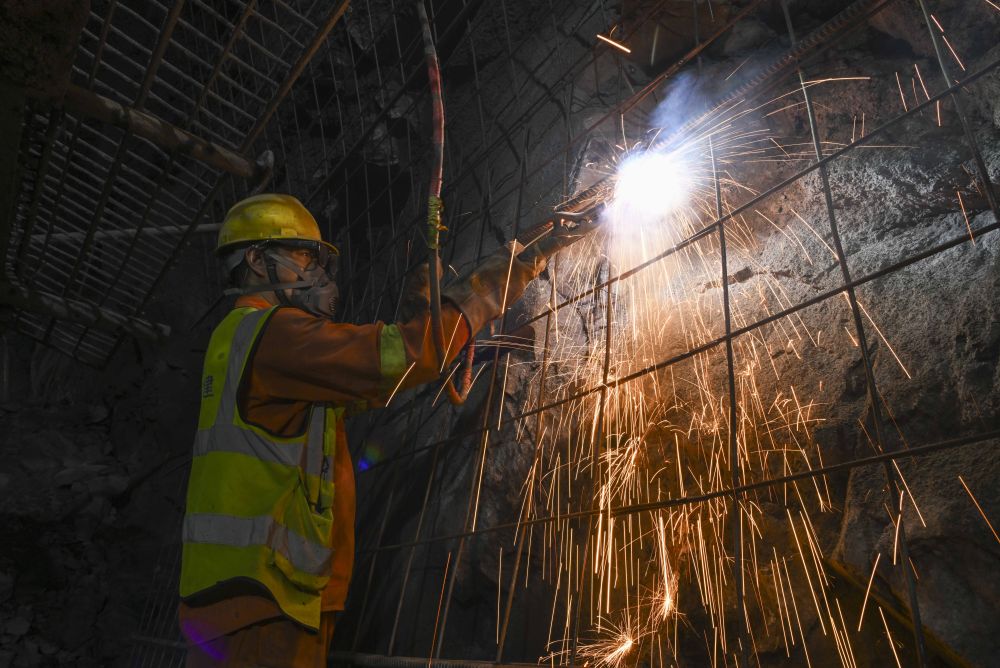 12月25日,工人在新疆天山勝利隧道內(nèi)進行焊接作業(yè)。新華社記者胡虎虎 攝