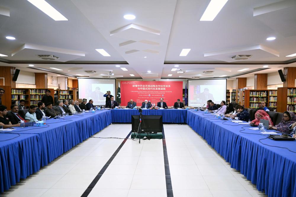 這是2024年10月18日在巴基斯坦首都伊斯蘭堡拍攝的“紅廳論壇·伊斯蘭堡對話會”活動現(xiàn)場。新華社 艾哈邁德·卡邁勒 攝