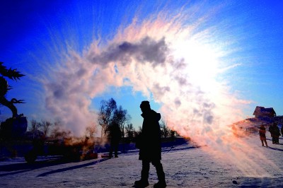 游客體驗(yàn)潑水成冰。