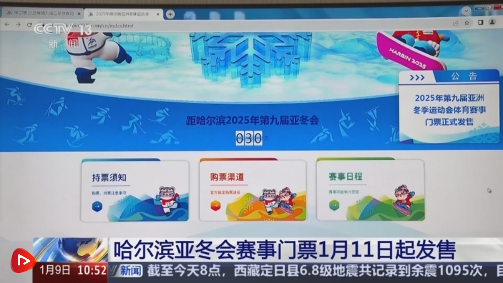 2025年第九屆亞洲冬季運動會體育賽事門票將于1月11日15:00啟動公眾銷售,銷售的門票包括亞冬會全部冰上比賽項目。觀眾可以通過哈爾濱亞冬會官方網(wǎng)站或直接登錄哈爾濱亞冬會官方票務(wù)網(wǎng)站或官方票務(wù)小程序購買門票。本屆亞冬會將于2月7日在哈爾濱國際會展體育中心舉行開幕式,2月14日閉幕。
