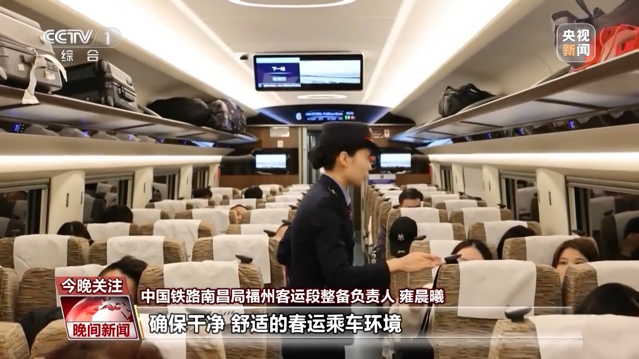 中國鐵路南昌局福州客運段整備負責人 雍晨曦:今年春運,客流高峰日預計出現在正月初八。為此,我們準備了25萬余件高溫熨燙消毒臥具和頭靠巾,增配了23萬余件滿足旅途需求的衛(wèi)生紙等消耗品,確保干凈、舒適的春運乘車環(huán)境。