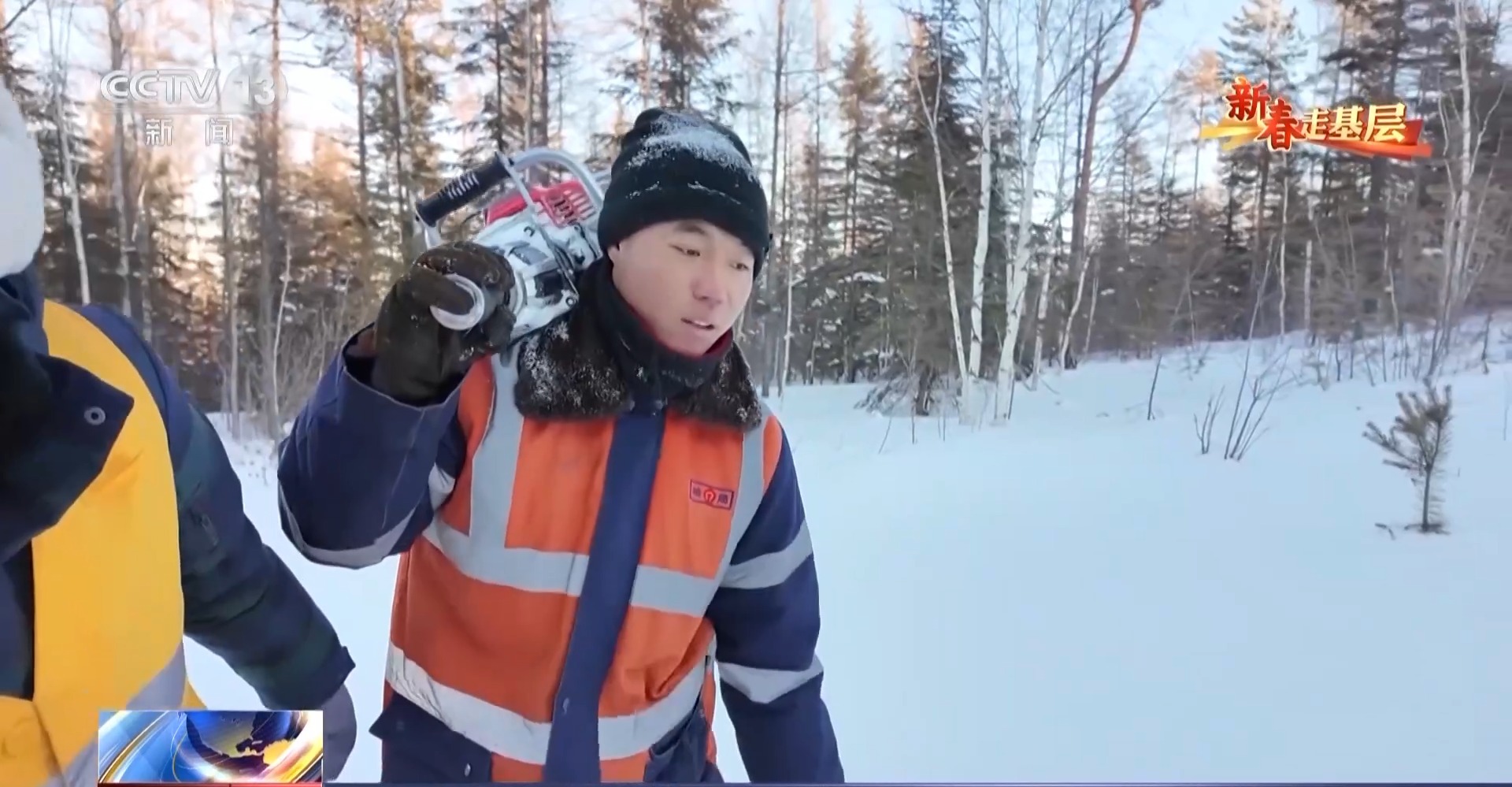 清晨7時(shí)多,氣溫在零下30多度,記者跟隨維修工隊(duì)的小伙子們前往作業(yè)現(xiàn)場(chǎng)。 剛下過(guò)一場(chǎng)大雪,森林里的積雪已經(jīng)沒(méi)過(guò)膝蓋。