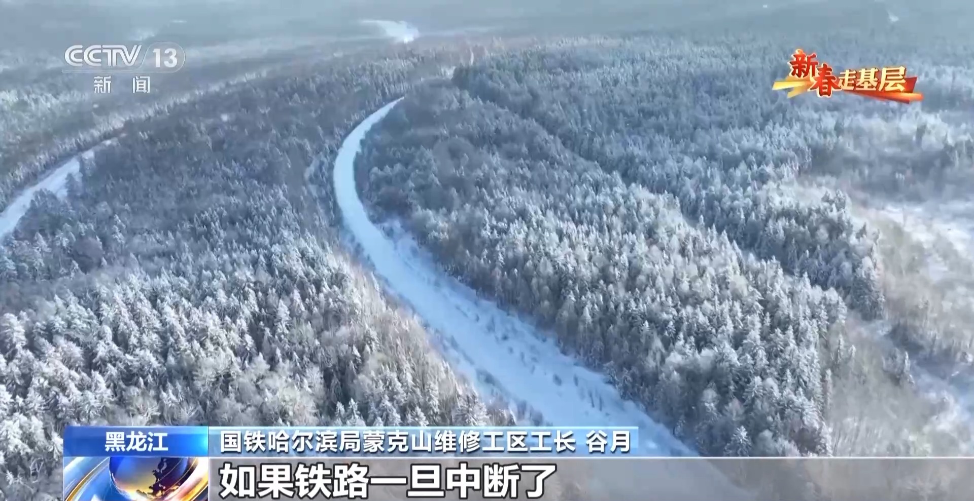 國(guó)鐵哈爾濱局蒙克山維修工區(qū)工長(zhǎng) 谷月:大雪封山,這種情況下,公路運(yùn)不進(jìn)來(lái)的東西只能靠鐵路。如果鐵路一旦中斷了,林區(qū)百姓生活或者物資運(yùn)輸都運(yùn)不進(jìn)去,也運(yùn)不出來(lái)。
