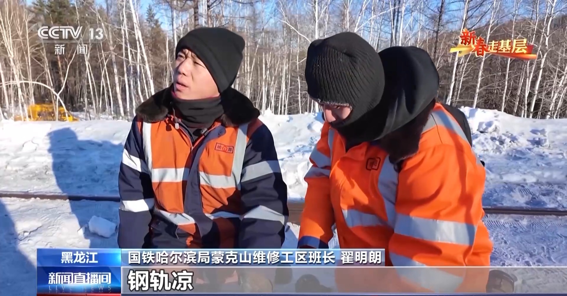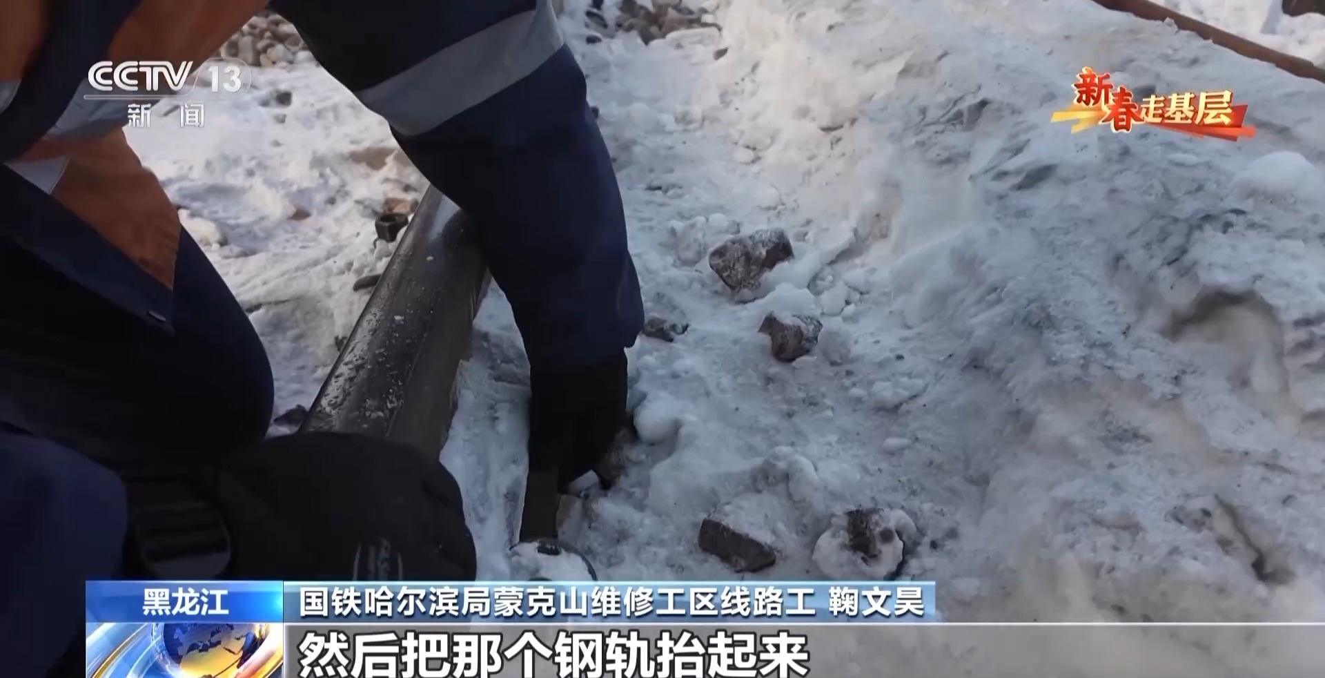 國(guó)鐵哈爾濱局蒙克山維修工區(qū)班長(zhǎng) 翟明朗:我們到現(xiàn)場(chǎng)最冷就是凍腳,只要一停下來(lái),兩三分鐘腳就凍麻了,要是不烤烤火,這腳一天都緩不過(guò)來(lái)。