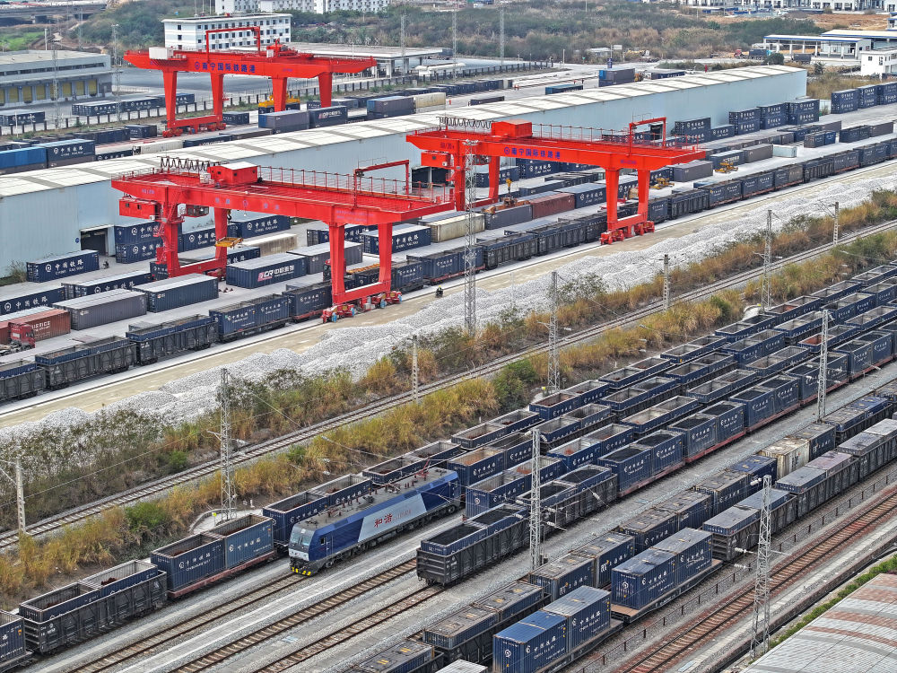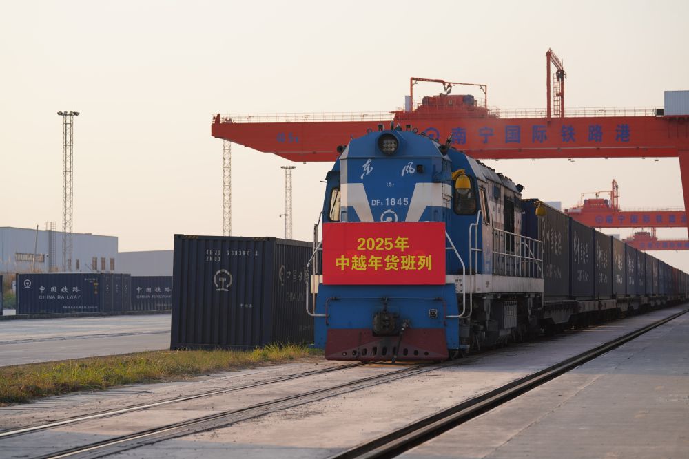 1月15日,中越年貨班列在南寧國際鐵路港整裝待發(fā)。新華社發(fā)