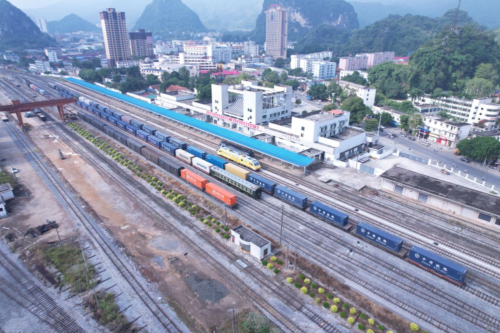 2024年10月17日,在國門車站憑祥站,中越班列列車整裝待發(fā)。新華社發(fā)