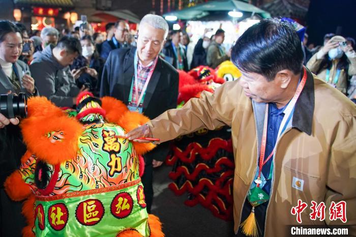 用朱砂為舞獅點(diǎn)睛,象征喚醒獅子,賦予其新生;揭紅紙拓印“?!弊郑淮┥蠎蚍w驗(yàn)邕劇獨(dú)特韻味……中國農(nóng)歷春節(jié)臨近,參加“世界市長對話·南寧”活動的外賓們,在廣西南寧歷史文化街區(qū)感受中國新春民俗,探尋年味。