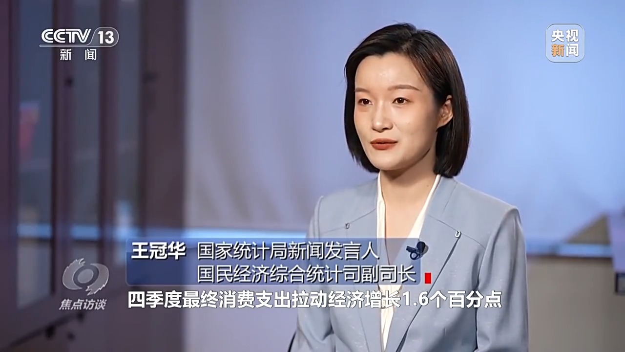 國(guó)家統(tǒng)計(jì)局新聞發(fā)言人、國(guó)民經(jīng)濟(jì)綜合統(tǒng)計(jì)司副司長(zhǎng) 王冠華:四季度最終消費(fèi)支出拉動(dòng)經(jīng)濟(jì)增長(zhǎng)1.6個(gè)百分點(diǎn),比上個(gè)季度提高了0.2個(gè)百分點(diǎn)。以冰雪經(jīng)濟(jì)、首發(fā)經(jīng)濟(jì)為代表的消費(fèi)新場(chǎng)景熱度上升,直播帶貨、即時(shí)零售等消費(fèi)新業(yè)態(tài)快速發(fā)展,還有一些國(guó)貨潮品,出海又出圈。這些變化增強(qiáng)了對(duì)消費(fèi)市場(chǎng)恢復(fù)的信心,同時(shí)這些新的趨勢(shì)也是未來(lái)進(jìn)一步擴(kuò)大國(guó)內(nèi)需求的重要政策著力點(diǎn)。
