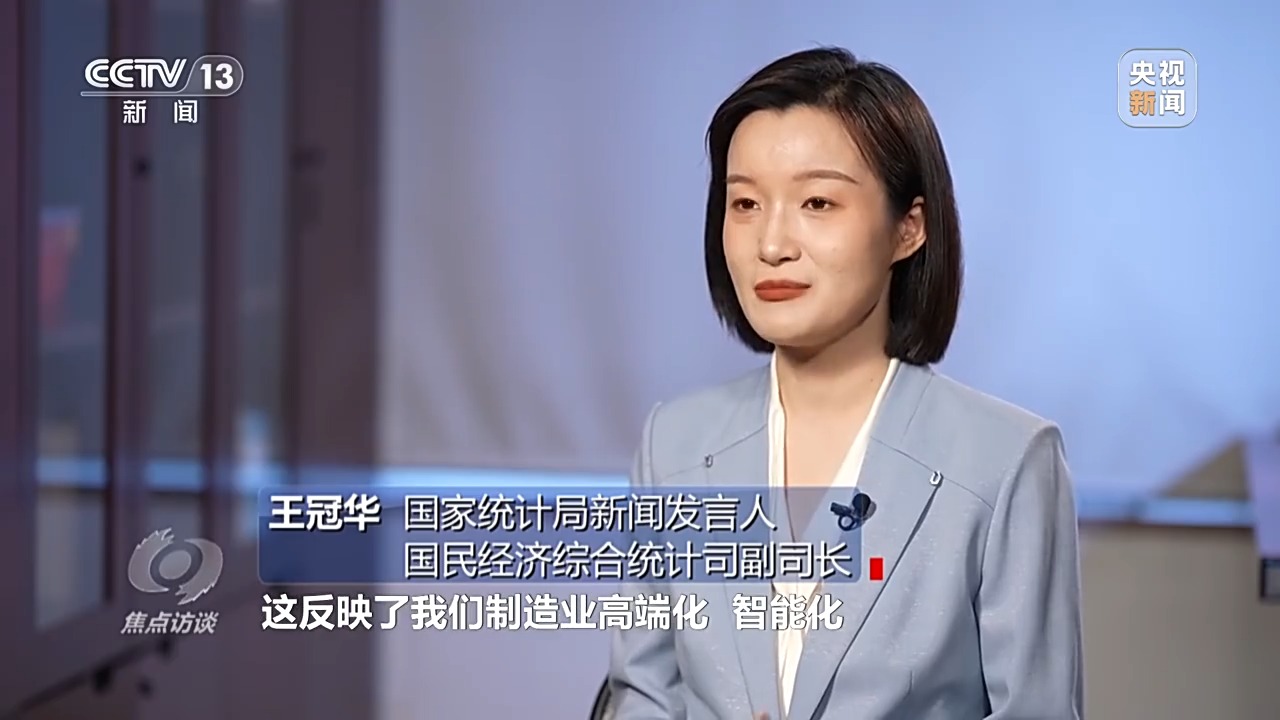 國(guó)家統(tǒng)計(jì)局新聞發(fā)言人、國(guó)民經(jīng)濟(jì)綜合統(tǒng)計(jì)司副司長(zhǎng) 王冠華:2024年各地在因地制宜發(fā)展新質(zhì)生產(chǎn)力,集成電路、人工智能、量子技術(shù)等這些領(lǐng)域都實(shí)現(xiàn)了新的突破。裝備制造業(yè)占規(guī)模以上工業(yè)的比重超過(guò)了34%,高技術(shù)制造業(yè)在規(guī)模以上工業(yè)中的比重超過(guò)了16%,兩個(gè)比重都是在穩(wěn)步提升,反映制造業(yè)高端化、智能化、綠色化發(fā)展的態(tài)勢(shì)在持續(xù)推進(jìn)。還有一個(gè)數(shù)據(jù),2024年的每一天,我國(guó)有超過(guò)8萬(wàn)輛汽車,340萬(wàn)臺(tái)智能手機(jī)下線,4.7億個(gè)快遞包裹寄送,中國(guó)市場(chǎng)的活力、魅力和潛力有目共睹。