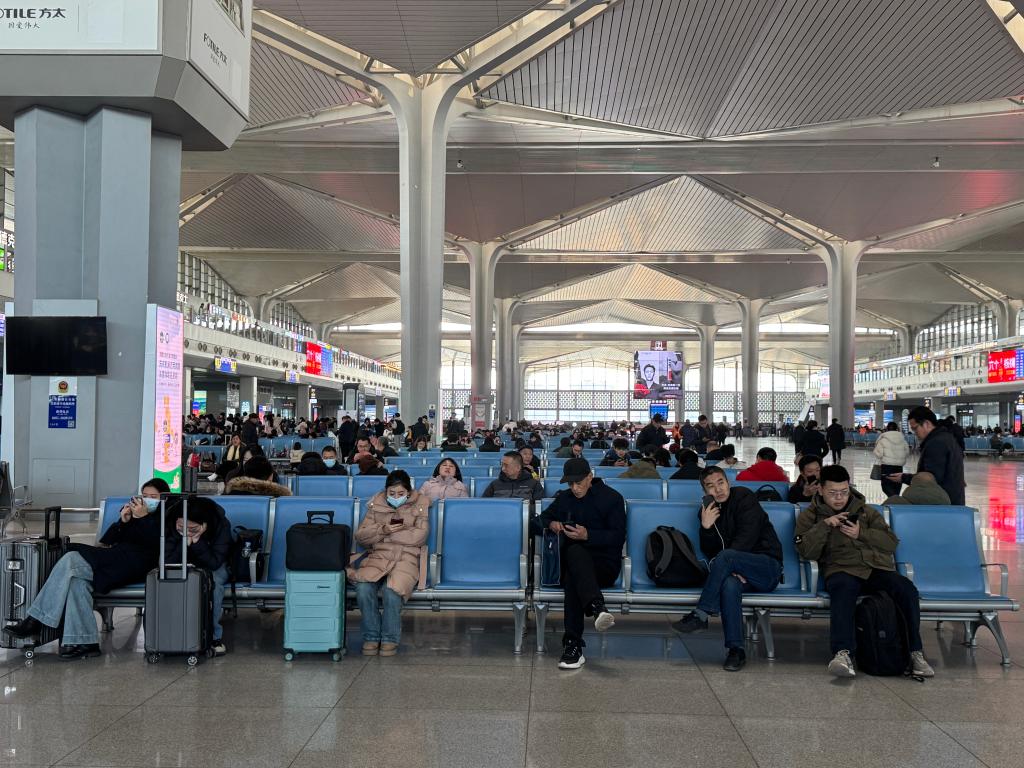 1月17日,乘客帶著行李在太原南站候車。新華社記者 王學(xué)濤 攝