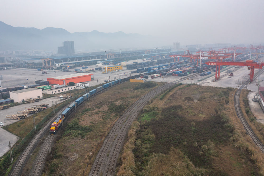 1月17日,重慶鐵路口岸公司的工作人員將海關(guān)查驗(yàn)合格的貨物裝車。新華社記者 黃偉 攝
